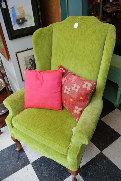 View Vintage Green Velvet Wingback Chair US. Love my green chair!!mollythis chair is fabulous! Vintage rounded back wing chair in black gray velvet green velvet.